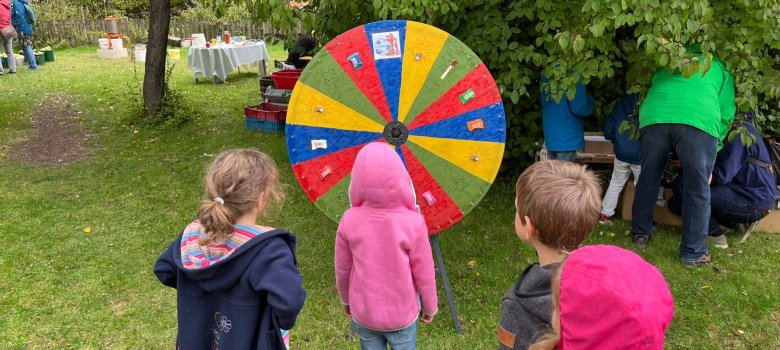 Vom Start weg war der Andrang am Glücksrad vor allem von Kindern groß. Über fast 2 Stunden konnten die Preise verteilt werden, die sichtlich den Geschmack der Teilnehmenden trafen. In Gesprächen mit den Eltern wurden vertiefende Informationen zum fairen Handel diskutiert.
