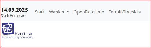 werden Sie zum Wahlergebnisportal der Citeq in Münster weitergeleitet. Hier können Sie die Wahlergebnisse aller Wahlen seit dem Jahr 2009 für die Stadt Horstmar, den Kreis Steinfurt und einzelner Kommunen im Kreis Steinfurt einsehen und herunterladen. Über den dortigen Button Termine können Sie die verschiedenen Wahlen aussuchen. Die Daten sind dort auch als Open-Data abrufbar.